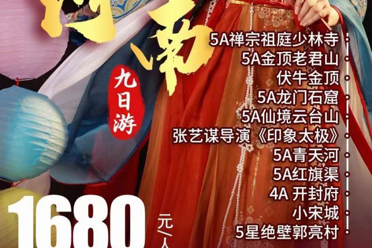 【5A禅宗祖庭少林寺. 5A皇家石刻龙门石窟.5A清明上河园. 5A天然氧吧老界岭.人工天河5A红旗渠. 5 星挂壁公路万仙山郭亮村.