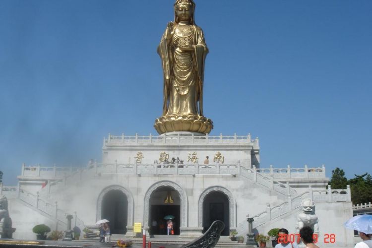 享用早餐,摆渡船至普陀山(船程约15分钟), 游【西天景区】(时间约1小时):观音古洞、二龟听法石、磐陀石、灵石庵、梅福禅院!【南海观音立像】(时间约1小时),南海观音立像处,恰是当年慧锷留不肯去观音之新罗礁上首龙湾岗墩,这座南海观音铜像已成为普陀山新的标志性建筑之一。【紫竹林】(时间约1小时):不肯去观音院、三十七唐式观音长廊;【法雨寺】(时间约45分钟),法雨寺位于普陀山中部,被称作“后寺”,其规模仅次于“前寺”普济寺,是普陀三大寺之一。,寺内的九龙藻井是南京明故宫遗物,造型奢华。【普济寺】和自行登记做佛事 (50 分钟),游览【佛顶山】