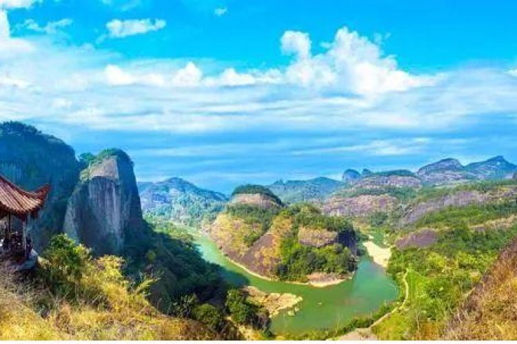 早餐后乘【九曲溪竹筏漂流】(约2小时),团友可乘坐毛竹扎成的古朴竹筏,前部上翘如靴,配数张背竹椅,安坐其上,冲波击浪而下,不仅能领略到有惊无险的情趣,而且四面无遮无拦,抬头可见山景,俯首能赏水色,侧耳能听溪声,伸手能触清流,其乐无穷,并且船行至五曲时游客可以欣赏到武夷山神秘的船棺文化。下岸后游览有一千多年的【武夷宫】,【宋街】。