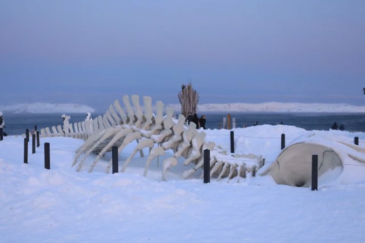 早餐后,乘车穿越雪原公路前往世界最北的小镇捷里别尔卡★,捷里别尔卡被雪山环绕,位于巴伦支海沿岸,地处北极圈之内的极光带上。抵达老捷里别尔卡,打卡北冰洋网红景点世界尽头的北冰洋秋千与沙滩、北极王座、被遗忘的船、利维坦之骸(鲸鱼骨骼)等,在冰天雪地的世界尽头里荡秋千,体验童话般白色世界的美好吧! 前往世界上最北的餐厅(午餐自理),您可以自行边享用俄式美食,边观赏蔚蓝北冰洋风光,看着远处的冰山。 可自费参加乘坐追鲸船出海观赏鲸鱼(约90分钟),摩尔曼斯克为俄罗斯北部终年不冻港,巴伦支海丰富的食物与相对较高的水温,一年四季都在吸引着鲸鱼的来访!根据一年四季的不同,科拉半岛海域经常会遇到觅食的野生鲸群活动。如果走运,在这里可以观赏到座头鲸、格陵兰鲸、抹香鲸、虎鲸和蓝鲸。(备注:此自费项目超过 60 岁且腿脚正常必须要有家人陪同,并签署免责协议后方可参加,不参加自费的客人可在领队或导游的陪同下自由在捷里别尔卡镇区自由活动。) 后返回摩尔曼斯克享用晚餐,行程结束返回酒店休息。